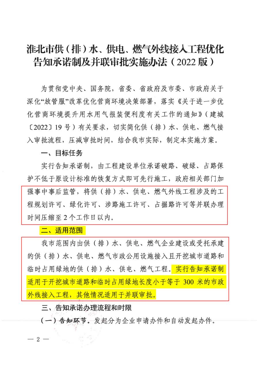 淮北市供(排)水、供電、燃?xì)馔饩€接入工程優(yōu)化告知承諾制及并聯(lián)審批實(shí)施辦法(2022版)