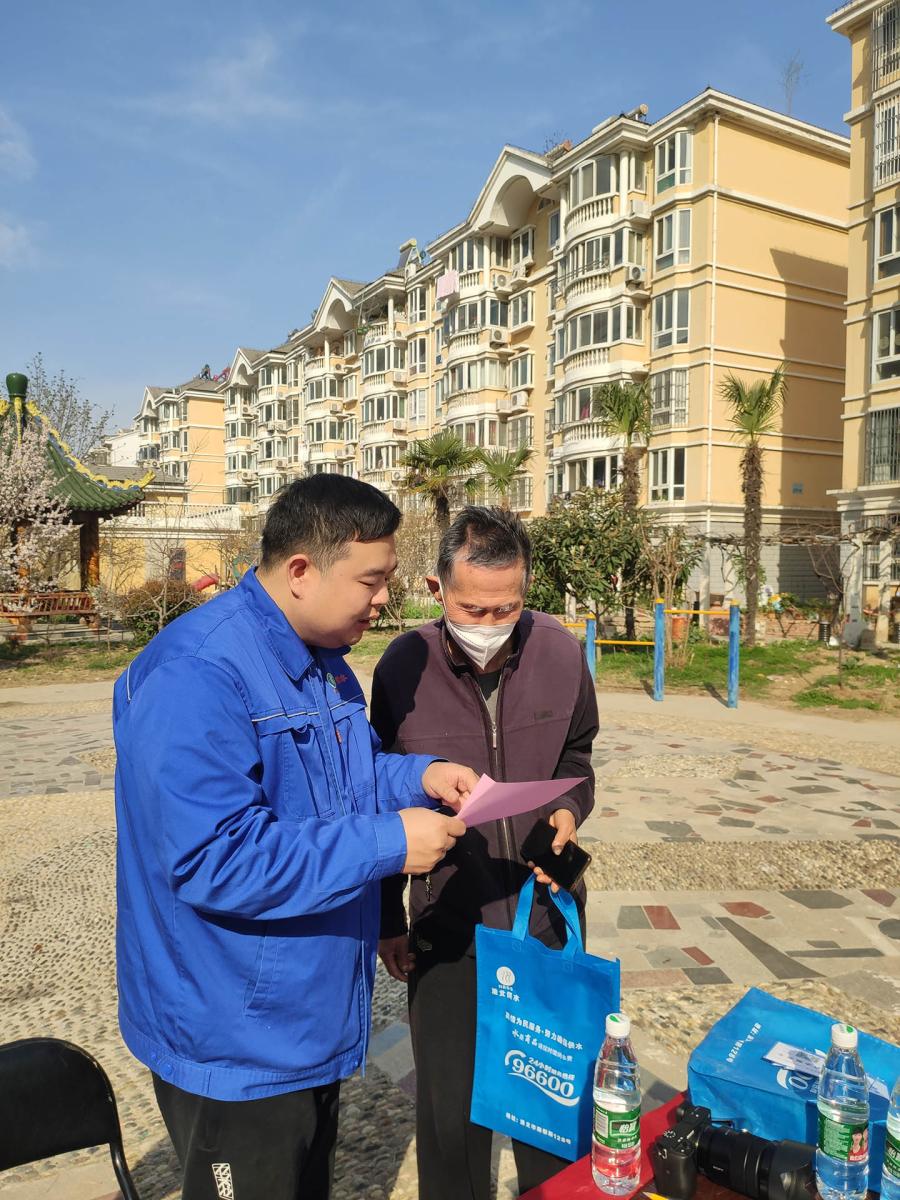 值“315消費(fèi)者權(quán)益日”來(lái)臨之際,市供水公司弘揚(yáng)標(biāo)桿力量,提振消費(fèi)信心?!袄钭用鞴┧蠕h黨員志愿服務(wù)隊(duì)”走進(jìn)社區(qū),積極開展便民服務(wù)活動(dòng)。通過(guò)“供水服務(wù)滿意度問(wèn)卷調(diào)查”、上門服務(wù)、發(fā)放“用水常識(shí)宣傳單”等方式,與用戶面對(duì)面溝通交流,了解廣大用戶用水需求,聽(tīng)取意見(jiàn)和建議,提升供水服務(wù)質(zhì)量,共筑社會(huì)誠(chéng)信,共享放心消費(fèi)。