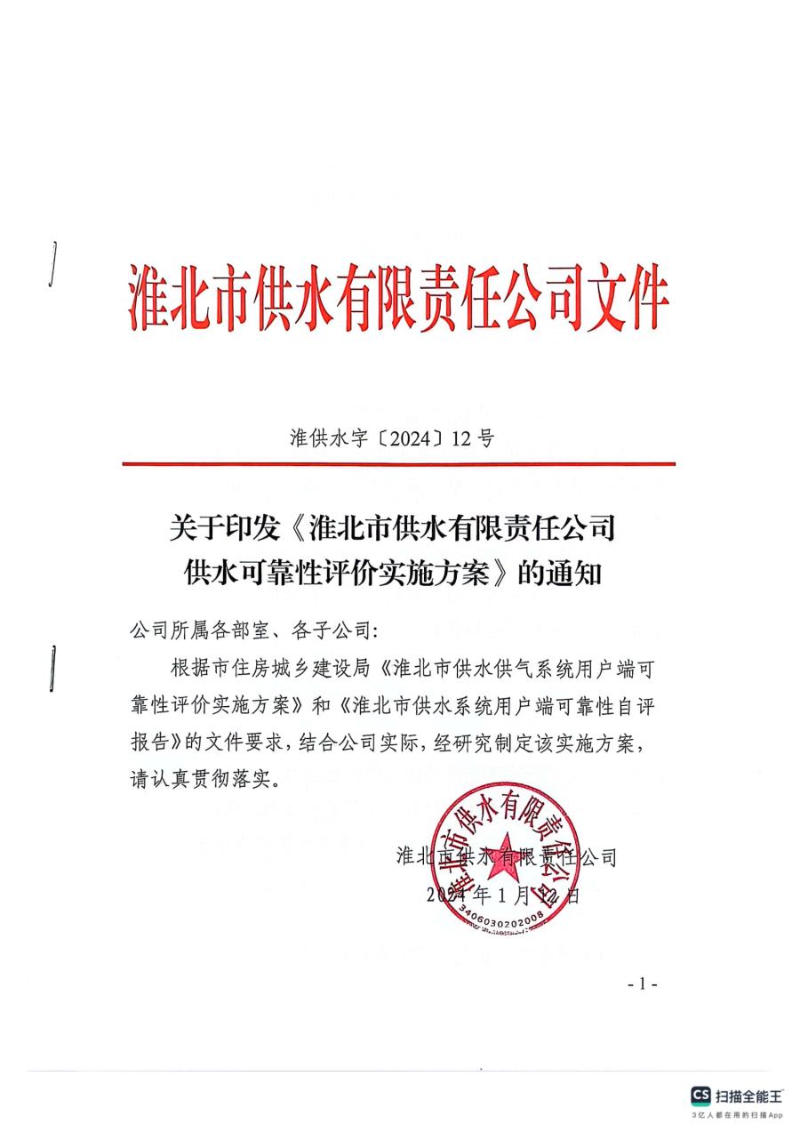 關(guān)于印發(fā)《淮北市供水有限責(zé)任公司供水可靠性評(píng)價(jià)實(shí)施方案》的通知