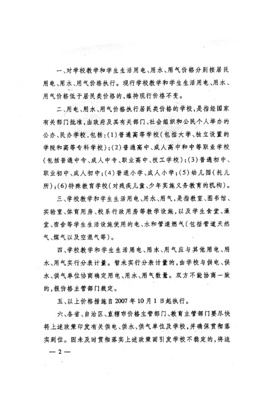 國(guó)家發(fā)展改革委、教育部關(guān)于學(xué)校電氣價(jià)格有關(guān)問(wèn)題的通知 發(fā)改價(jià)格【2007】2463號(hào)