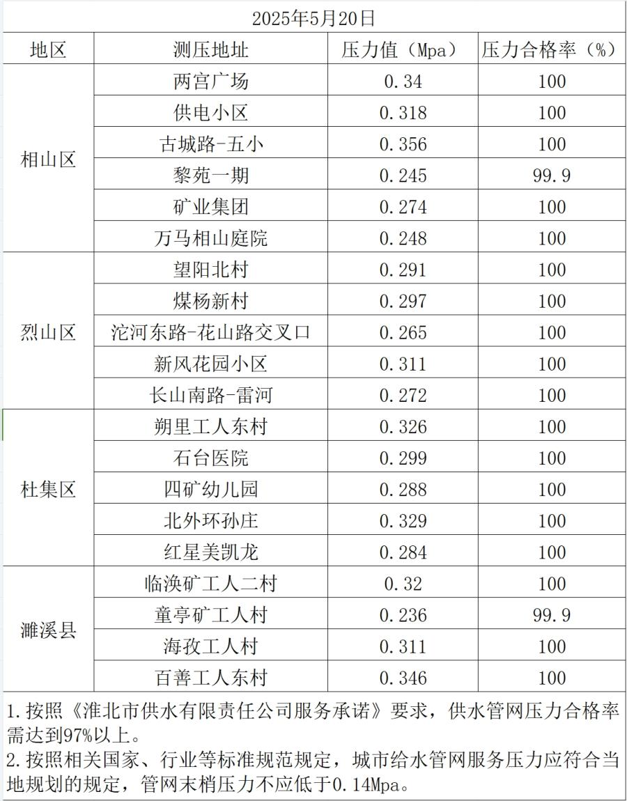 2025年5月20日水壓抽測(cè)公示