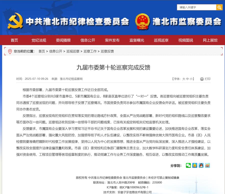 轉(zhuǎn)發(fā):九屆市委第十輪巡查完成反饋
