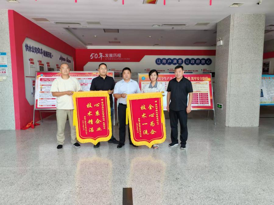 為表達謝意,7月18日上午,該企業(yè)專程來到供水公司贈送了“心系企業(yè)技術精湛”、“全心為企技術一流”兩面錦旗。對高溫下的供水人高效專業(yè)的服務和盡心敬業(yè)的精神給予高度評價。