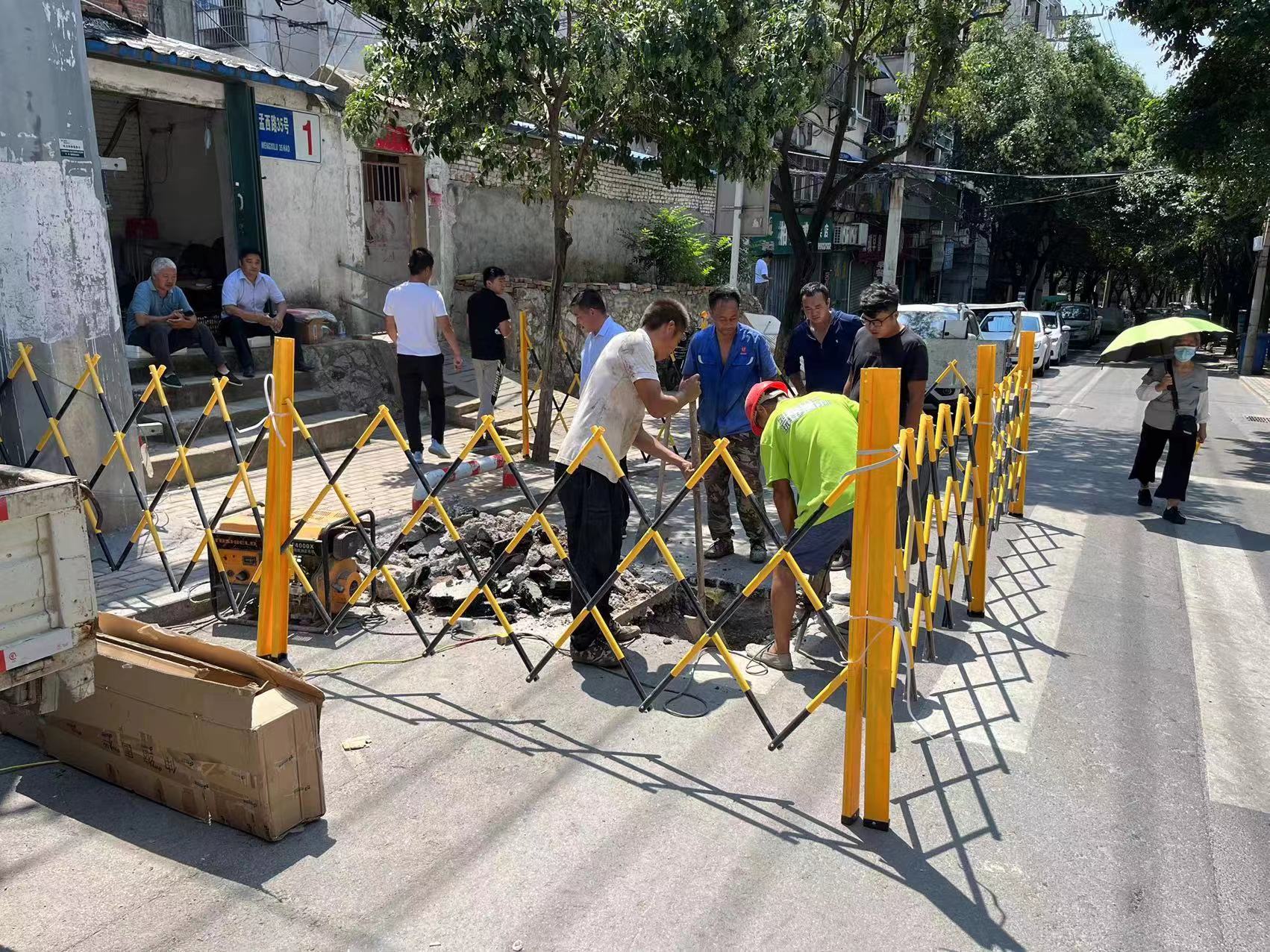 管網(wǎng)部立即對(duì)漏水點(diǎn)展開了搶修工作,漏水點(diǎn)在環(huán)孟山西路中間位置。為了確保過往車輛和施工人員的安全,經(jīng)過與交警部門協(xié)調(diào),對(duì)環(huán)孟山西路進(jìn)行了全封閉。搶修工人頂著高溫天氣,經(jīng)過8個(gè)小時(shí)的奮戰(zhàn),終于將漏水管道修復(fù)完成,確保了居民正常用水。晚上21時(shí),清運(yùn)多余的余土和開挖溝槽的回填,恢復(fù)環(huán)孟山西路正常通行。8月18日凌晨1時(shí),瀝清路面恢復(fù)完畢,開始清掃、沖刷開挖處路面的污垢。直至凌晨3時(shí),搶修工作全部完成。
